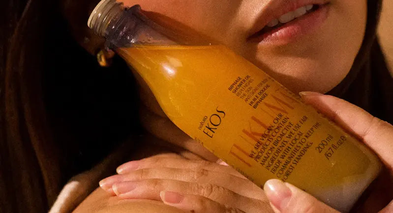 Leicht im Duschen mit nährendem Tucumã-Öl und Peelingpartikeln peelen.