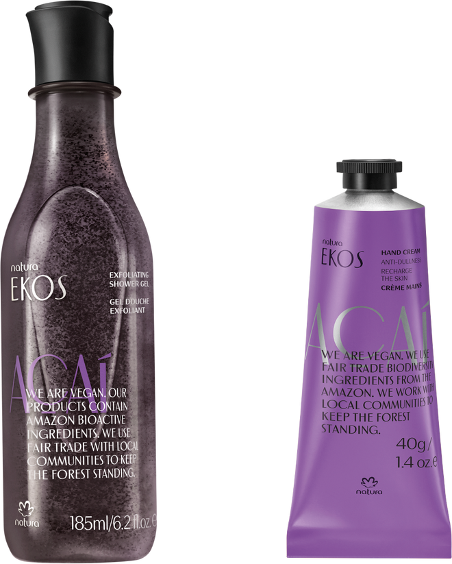 Gel Douche Exfoliant à l'Açaí : Profondément nourrissant avec des particules naturelles de graines pour une exfoliation légère et une peau renouvelée, plus douce.