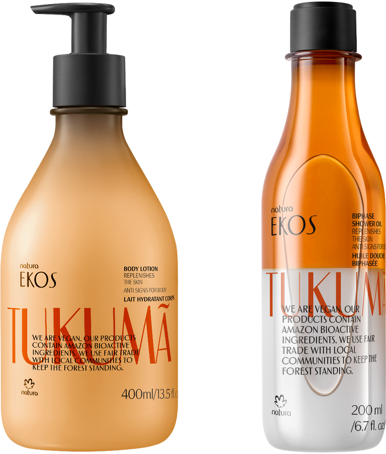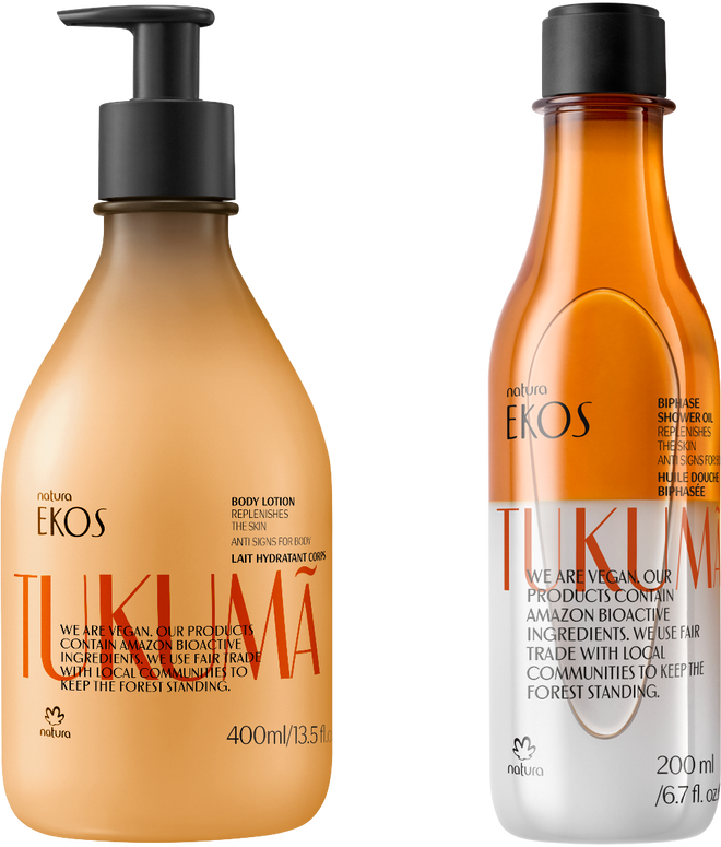 Huile Biphase Tukumã : Votre alliée pour une douche puissante, laissant un effet lumineux et une sensation de peau veloutée.