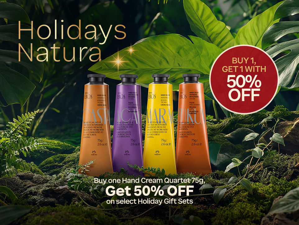 Compre um Conjunto de Quatro Cremes de Mãos 75g e obtenha 50% DE DESCONTO em Conjuntos de Presentes de Férias selecionados.