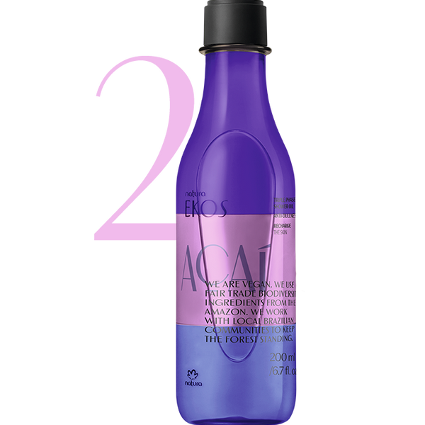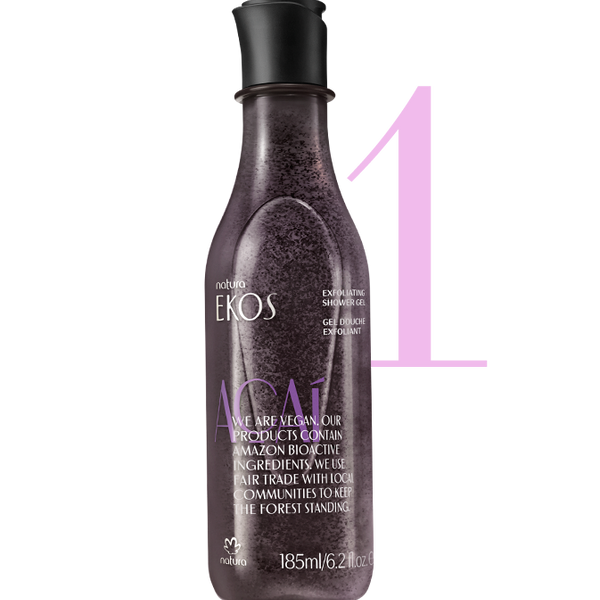 Açaí Exfoliating Shower Gel: Deeply nutritious with natural seed particles for light exfoliation and renewed, softer skin.
